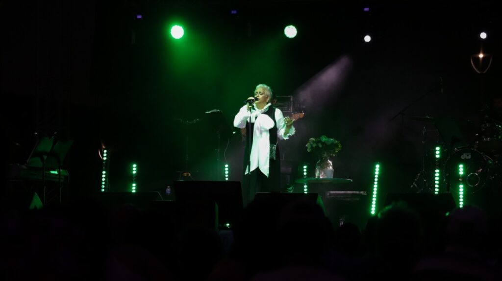 La artista de talla internacional, originaria del Estado de México, que ha sido ovacionada en China, Marruecos y varias partes del mundo, deleitó al público con melodías como Mi gusto es, Te hubieras ido antes, Un puño de tierra, Grítenme piedras del campo y Tierra Mala.