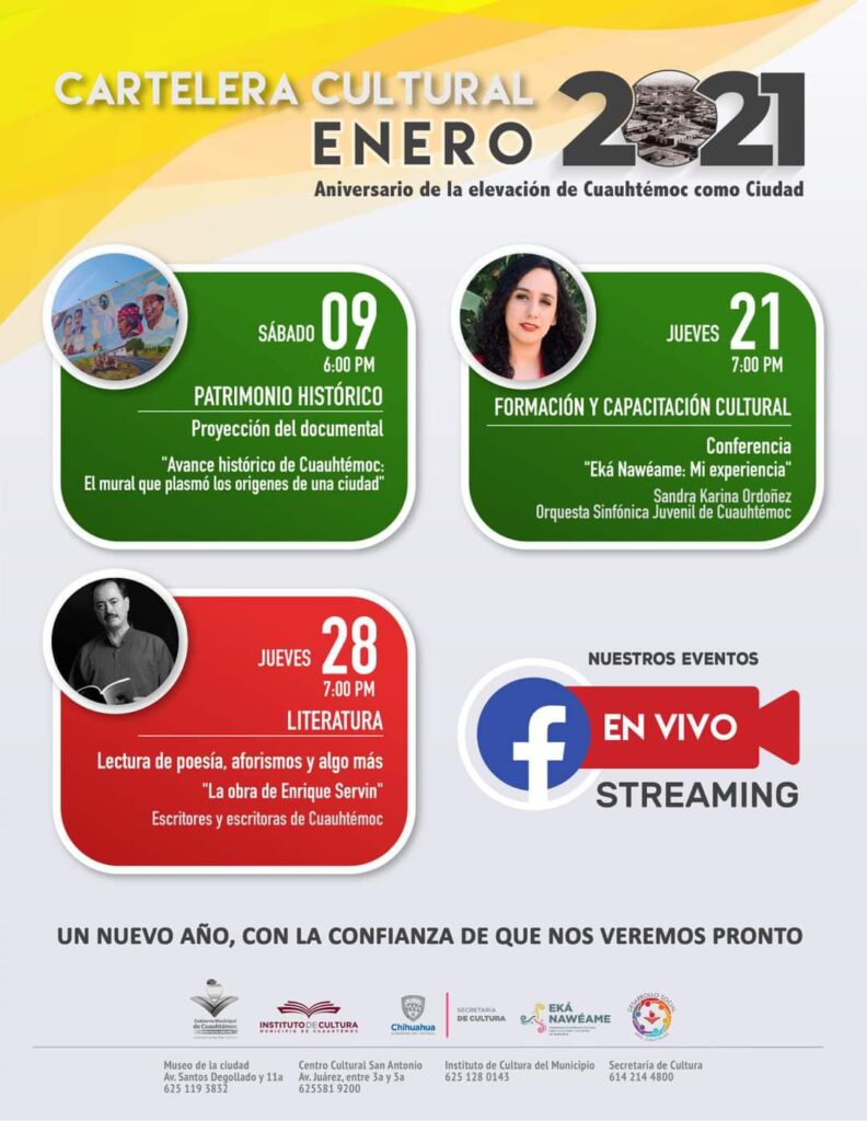Durante este mes, el instituto del Gobierno Municipal de Cuauhtémoc tendrá en este principio del 2021 un comienzo con pocos eventos pero de trascendencia e interés.