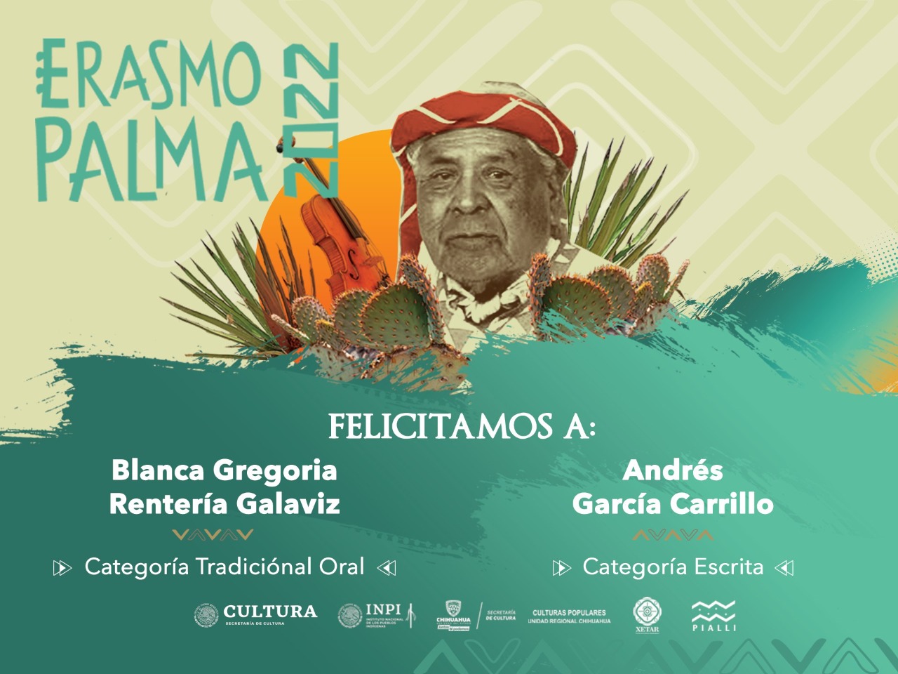 Gobierno del Estado, a través de la Secretaría de Cultura (SC), dio a conocer a las dos personas ganadoras del Premio Indígena Literario “Erasmo Palma”, edición 2022, quienes recibirán un estímulo económico de 30 mil pesos cada uno, así como la publicación de sus obras.