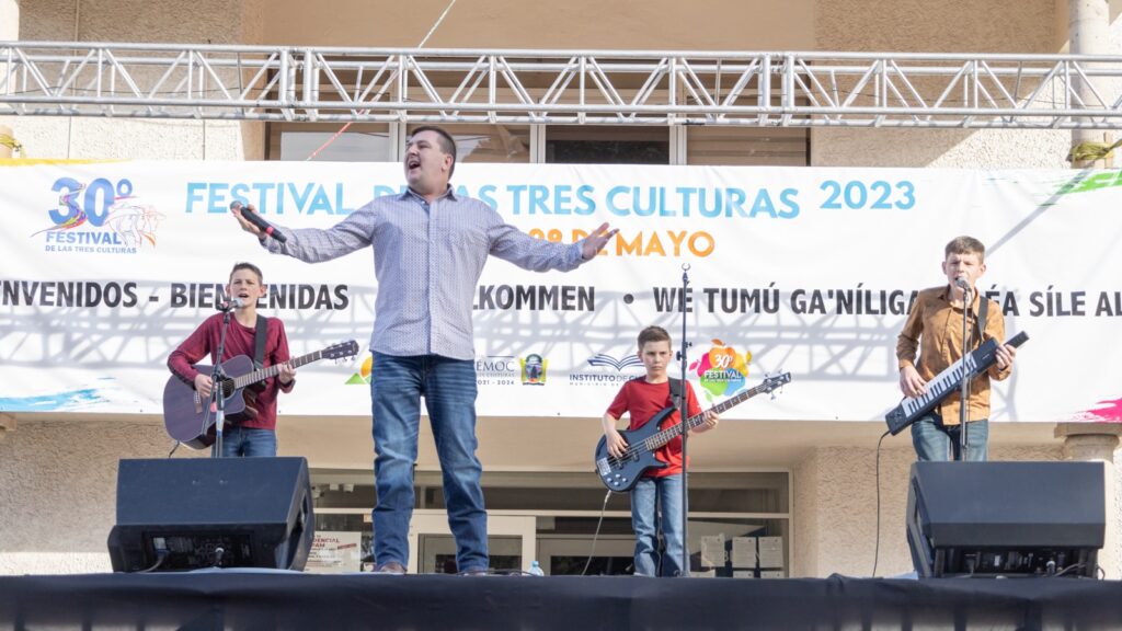 La Verbena contó con la participación del menonita “Pancho Pantera”, quien estuvo acompañado de talentosos jóvenes músicos de su comunidad, que orgullosamente interpretaron música regional mexicana.