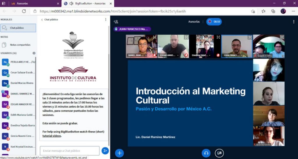 Con una participación de 20 personas de distintas disciplinas artísticas, así como del ámbito de la administración y gestión cultural, el taller se llevó a cabo a través de la Plataforma Moodle, indicó el Director del Instituto de Cultura del Municipio Luis Armendáriz Ledezma.