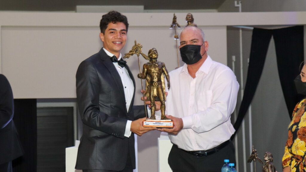 El Cuauhtémoc de Oro lo recibió de manos del presidente municipal Beto Pérez, durante un evento organizado por el Instituto, donde se premió a lo más destacado de cada una de las disciplinas que se practican en el municipio, deportistas que han puesto en alto el nombre de Cuauhtémoc a nivel estatal, nacional e internacional.