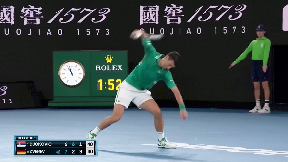 Después de la maniobra, Djokovic exhaló un estruendoso grito que resonó en toda el lugar, para después estrellar furiosamente su raqueta en la cancha, una y otra vez, hasta que caminó hacia su banca donde arrojó los restos de su instrumento al suelo.