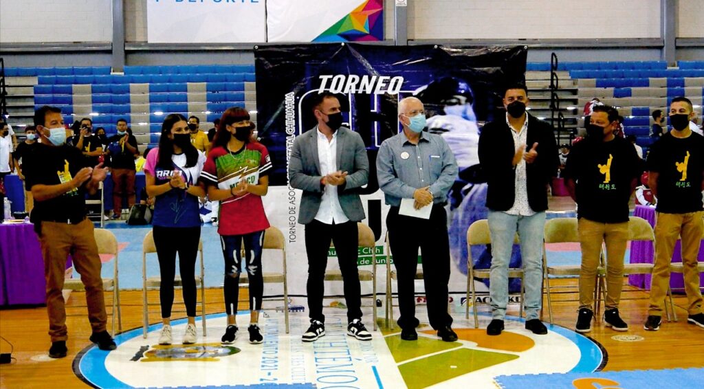 En el presídium estuvieron presentes las atletas juarenses Laura Ovalle, medallista de oro en la Universiada Nacional, e Irlanda Rodríguez, ganadora en el abierto de Austria; Abel Antillón, director del Instituto Municipal de Cultura Física y Deporte; y maestros de la Asociación Estatal de Taekwondo.
