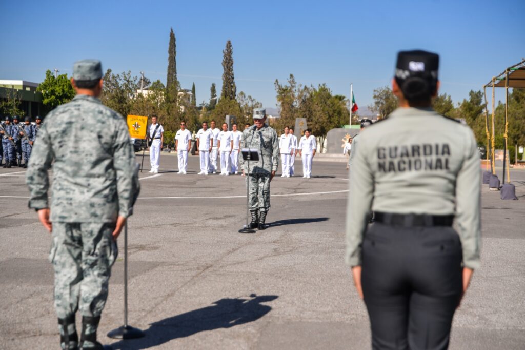 La Gobernadora del Estado estuvo presente esta mañana en la ceremonia de toma de posesión al mando y protesta de bandera, del comisario jefe Fernando Colchado Gómez, como nuevo coordinador estatal de la Guardia Nacional en Chihuahua.
