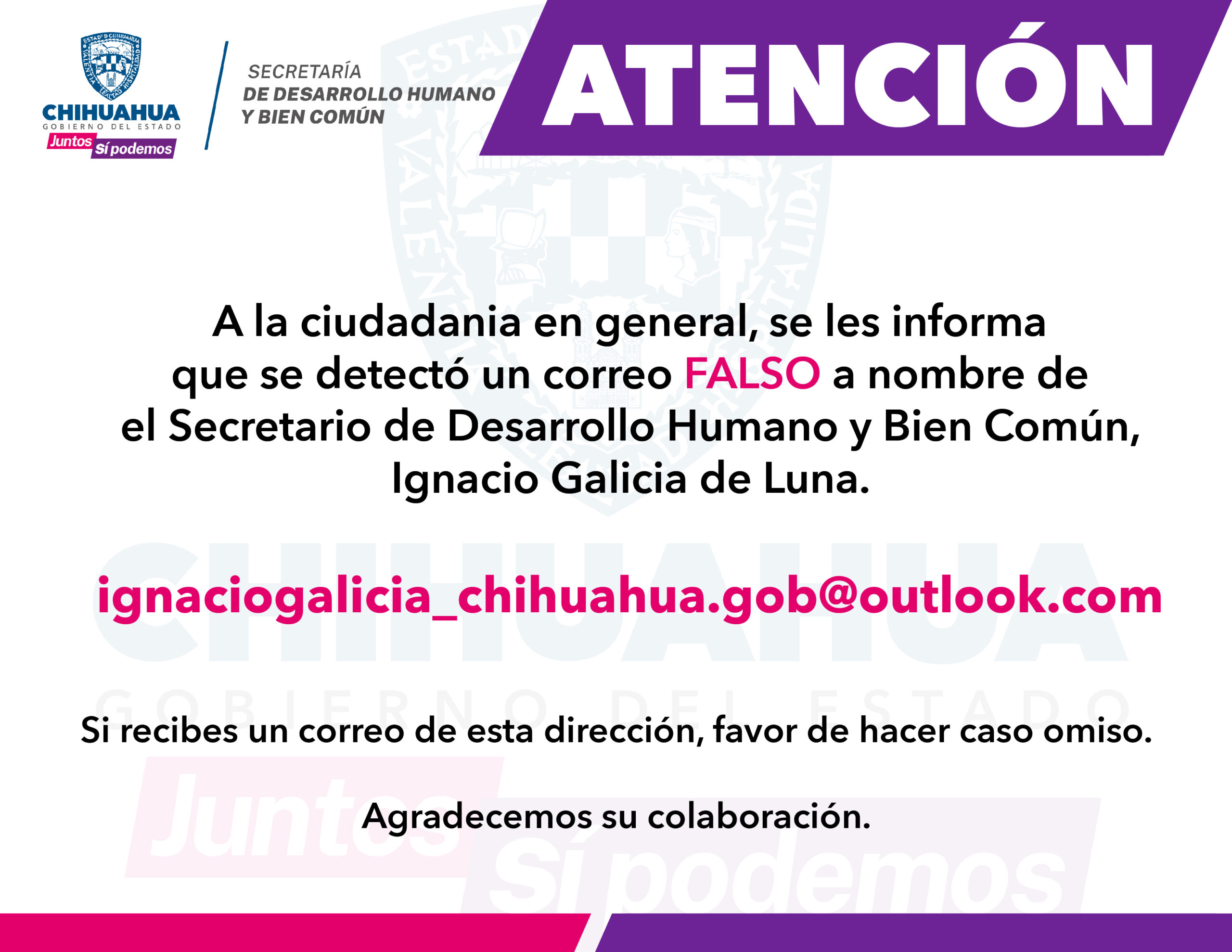 Se trata del correo electrónico: ignaciogalicia_chihuahua.gob@outlook.com.
