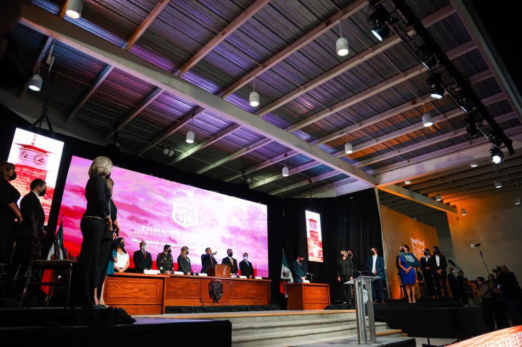 Cd.Delicias, Chih.- En seguimiento a su gira de trabajo, la gobernadora Maru Campos Galván, estuvo presente en la toma de protesta de Jesús Alberto Valenciano García como presidente municipal de Delicias, así como de los miembros del Ayuntamiento de este municipio.