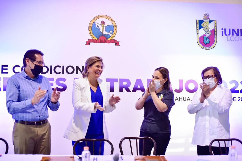 La gobernadora Maru Campos Galván asistió al Festejo por el Día del Trabajo y Firma del Pliego Petitorio del Sindicato de Trabajadores al Servicio del Gobierno del Estado (STSGE), que contempla las condiciones generales de trabajo para el año 2022.