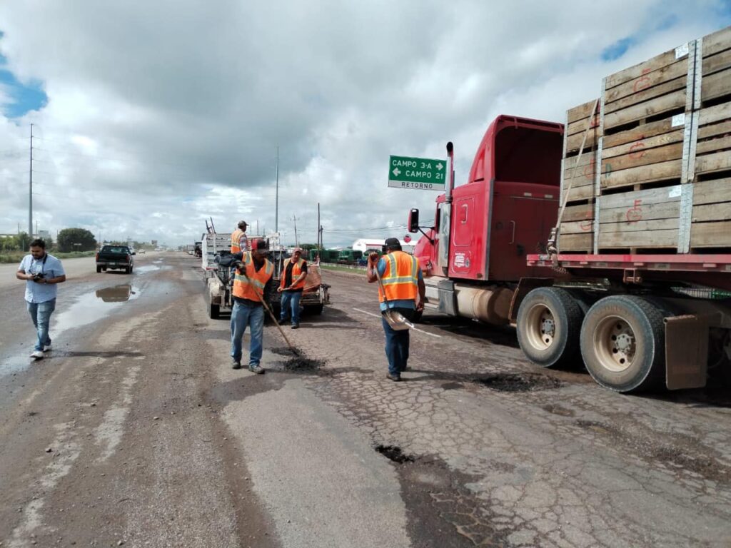 *Inician SCOP y empresarios menonitas con programa de bacheo inmediato en el corredor comercial; modernización de ese tramo comenzará en el trimestre final del año