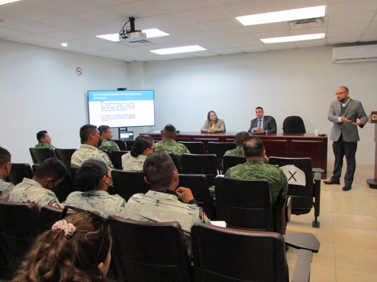 En seguimiento a los acuerdos generados en la Mesa de Seguridad Regional Para la Construcción de la Paz, la Fiscalía de Distrito Zona Sur y la Comisión Estatal de Derechos Humanos (CEDH), brindaron capacitación en materia de derechos humanos a elementos del Ejército Mexicano y la Guardia Nacional.