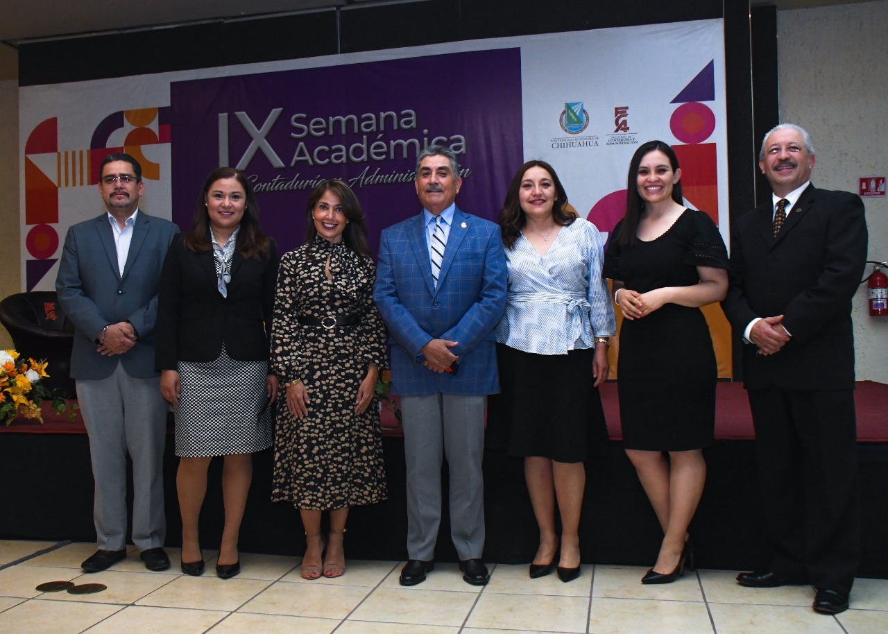Chihuahua.- La Facultad de Contaduría y Administración de la Universidad Autónoma de Chihuahua clausuró su IX Semana Académica con la entrega de reconocimientos a líderes académicos y mejores promedios de alumnas y alumnos.