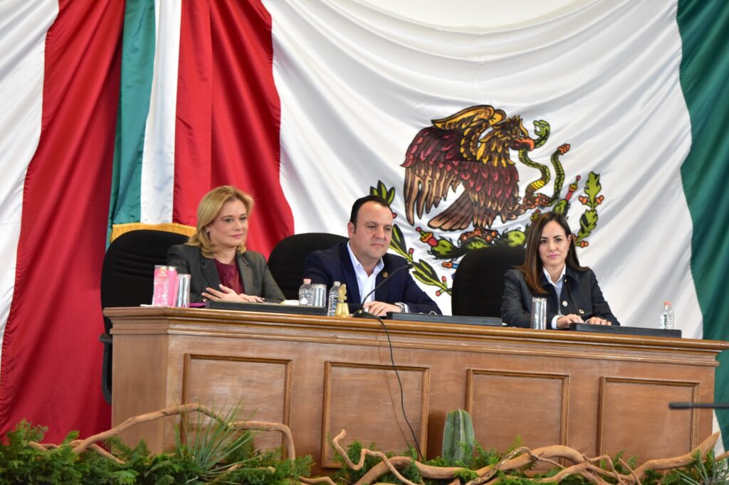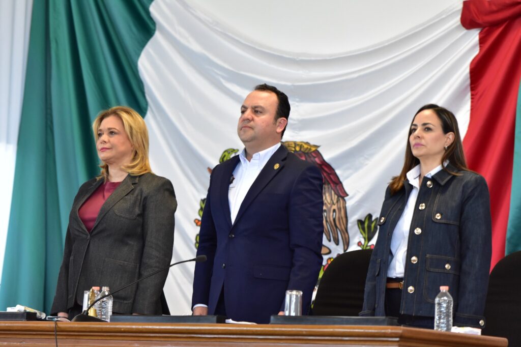 Durante los festejos realizados en Cuchillo Parado por el 115 Aniversario del Inicio de la Revolución Mexicana, las y los diputados de la 68 Legislatura realizaron una Sesión Solemne conmemorativa en la que se contó con la presencia de la gobernadora María Eugenia Campos y de la presidenta del Tribunal Superior de Justicia, Marcela Herrera.