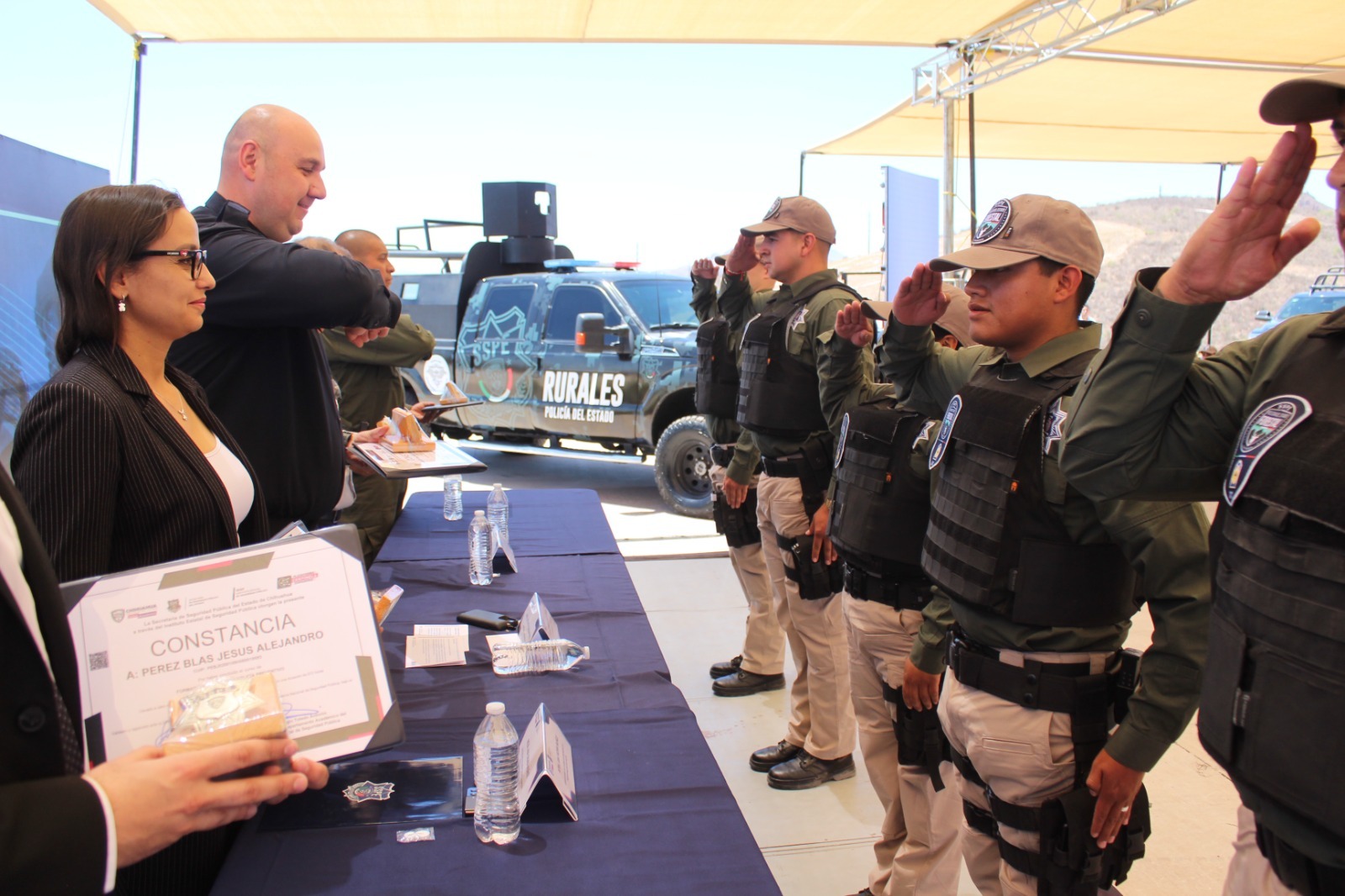 El evento se llevó a cabo este 29 de abril, en las instalaciones del Instituto Estatal de Seguridad Pública de la ciudad de Chihuahua, con la participación del personal administrativo de la SSPE, así como de las familias de los nuevos agentes, quienes celebraron el logro alcanzado.