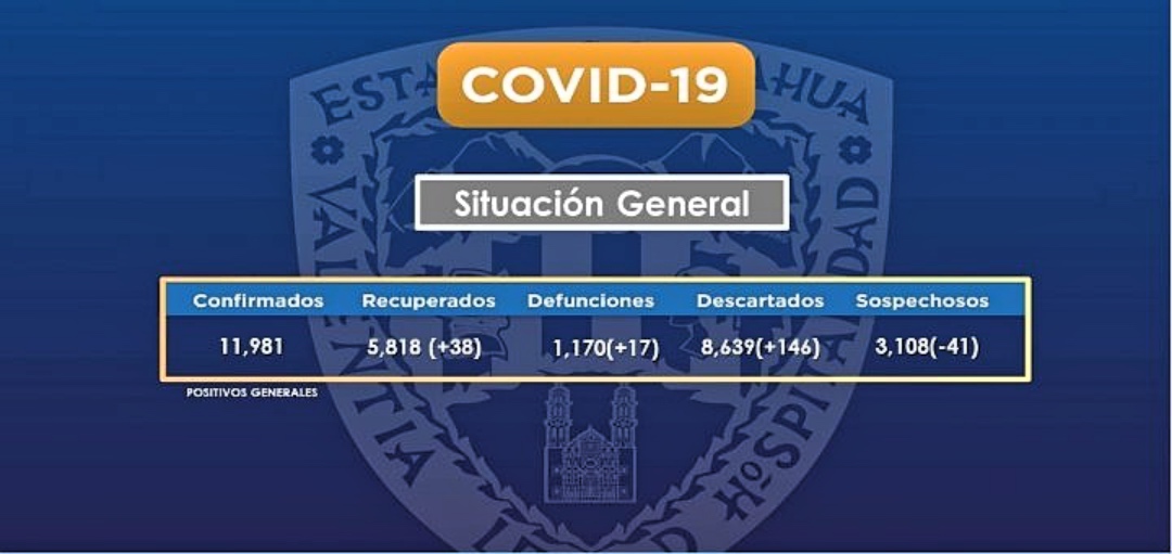 La Secretaría de Salud informó que a las 7:00 horas de hoy, se tienen en el estado un total de 11 mil 981 contagios acumulados y mil 170 decesos por COVID-19, luego de que se confirmaron 171 nuevos casos y 17 fallecimientos.