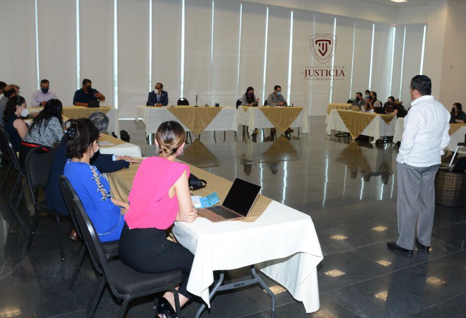 ”Existen tres modelos de organización de los juzgados en Chihuahua: los tradicionales que siguen funcionando para abatir el rezago que se quedó previo a la reforma en materia familiar, civil y mercantil. Como todos sabemos el modelo en materia penal es lo que se conoce como un modelo de gestión donde se descarga al juez de todas las responsabilidades de carácter administrativo para que adopte un modelo que se dedique a la cuestión jurisdiccional y los aspectos administrativos queden a cargo de otra entidad”, mencionó Villegas Montes en la reunión.