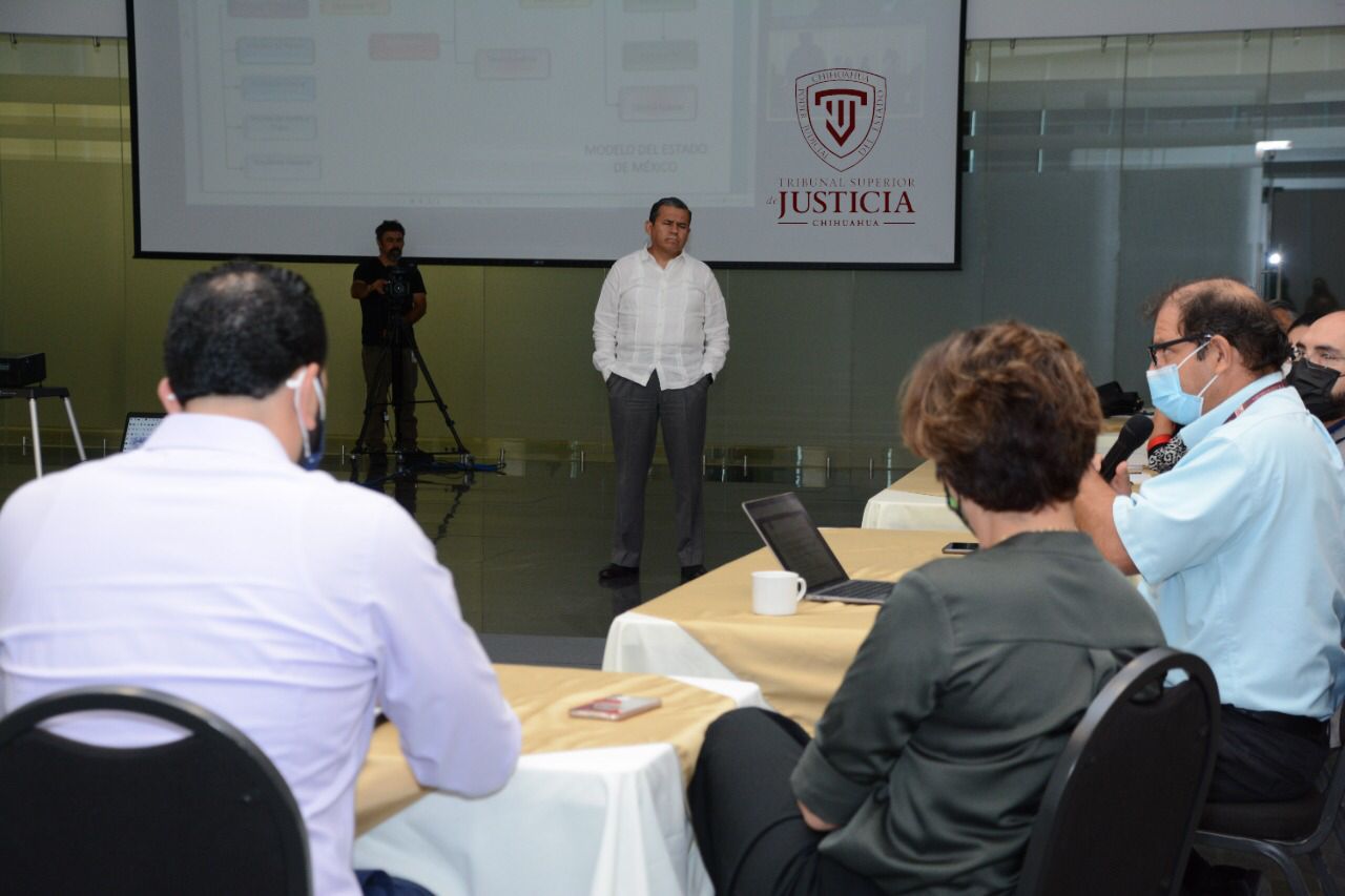 ”Existen tres modelos de organización de los juzgados en Chihuahua: los tradicionales que siguen funcionando para abatir el rezago que se quedó previo a la reforma en materia familiar, civil y mercantil. Como todos sabemos el modelo en materia penal es lo que se conoce como un modelo de gestión donde se descarga al juez de todas las responsabilidades de carácter administrativo para que adopte un modelo que se dedique a la cuestión jurisdiccional y los aspectos administrativos queden a cargo de otra entidad”, mencionó Villegas Montes en la reunión.