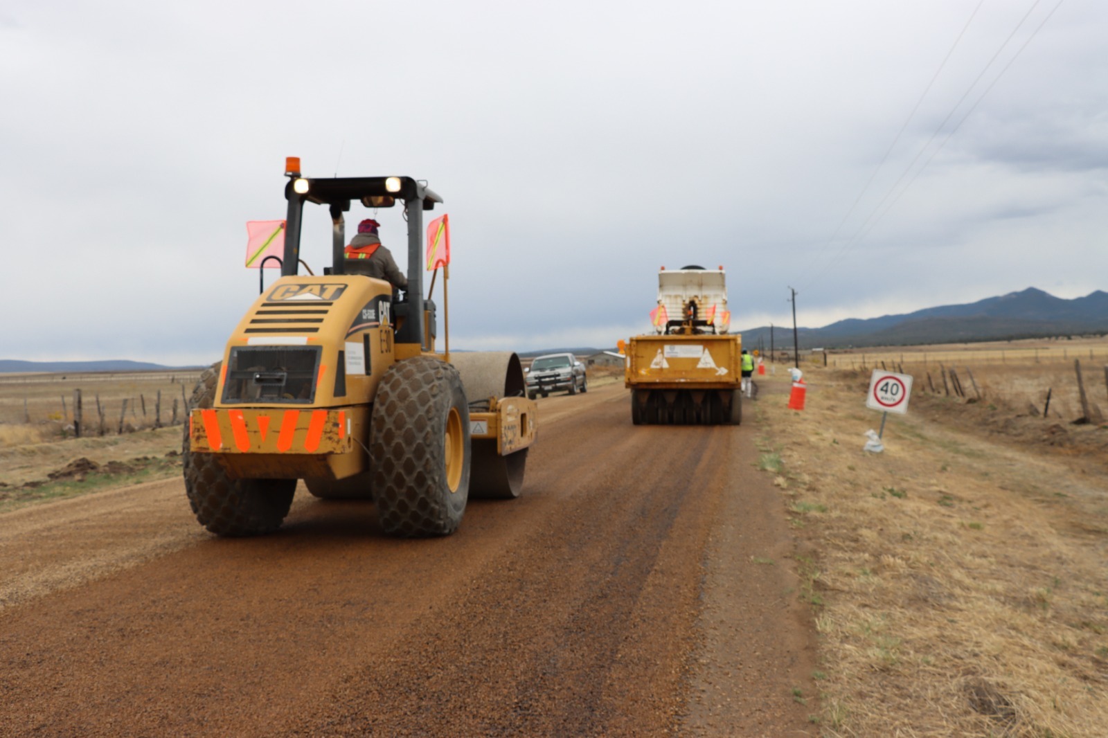 Agregó que los trabajos incluyen a más de 130 caminos con la aplicación de riego de sello, que en su conjunto suman arriba de 600 kilómetros en atención.