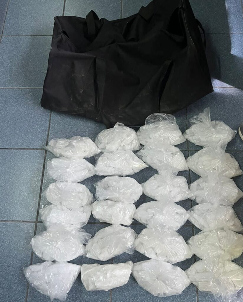Al interior del automóvil se localizó una maleta de color negro que, en su interior, contenía 24 paquetes de plástico con una sustancia granulosa y transparente con las características de la droga conocida como “cristal” con un peso de 10 kilogramos, cuyo valor asciende aproximadamente a 3 millones de pesos.