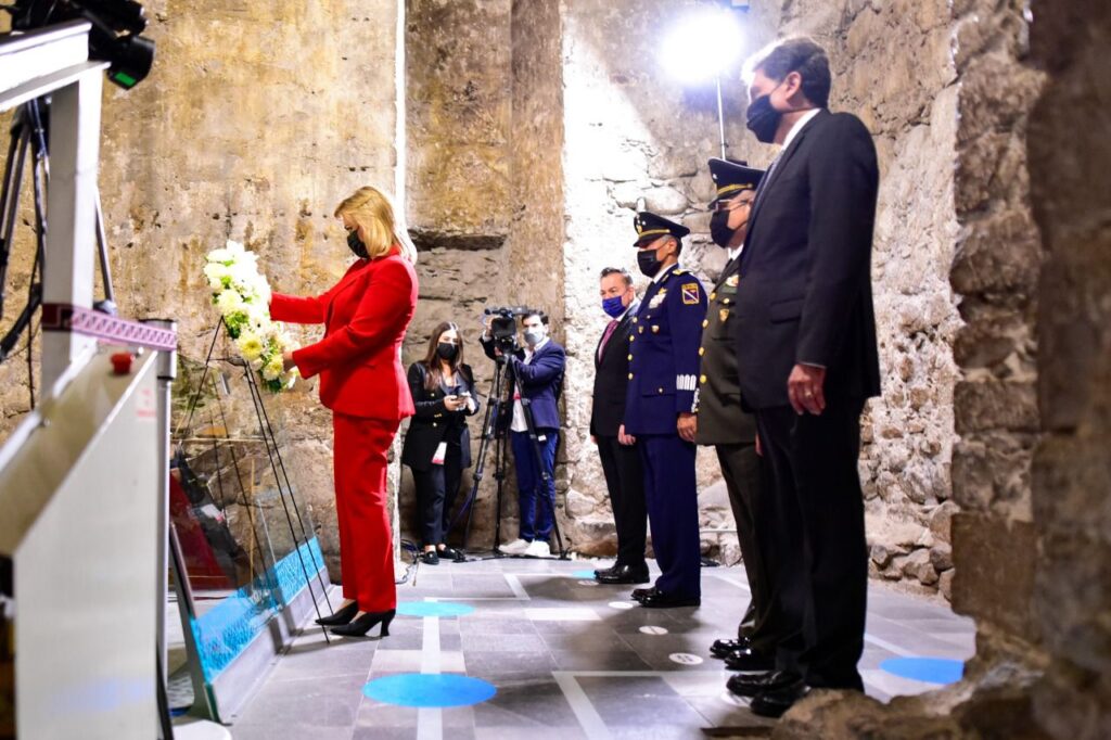 Durante el acto protocolario, la Gobernadora tuvo a bien realizar el deposito de una ofrenda floral en el Museo Calabozo de Hidalgo para posteriormente montar una guardia de honor a los héroes de la patria, en compañía de autoridades de los tres niveles de gobierno.