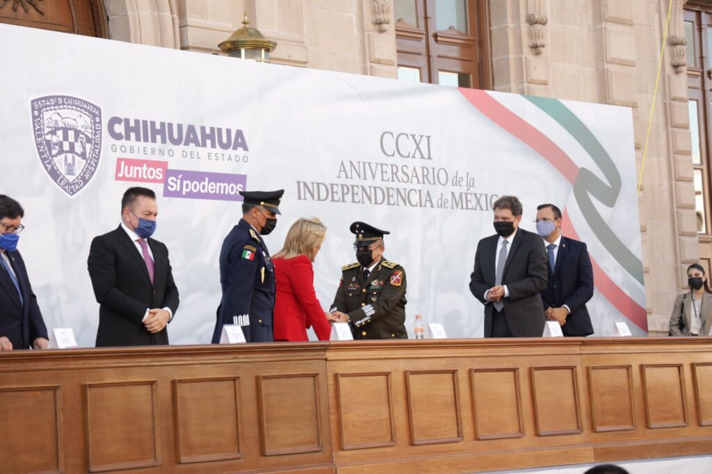 En el marco de la conmemoración del CCXI aniversario del inicio de la guerra de Independencia de México, la gobernadora del Estado de Chihuahua, Maru Campos Galván, encabezó la correspondiente ofrenda cívica en honor a los héroes de la patria desde Palacio de Gobierno.