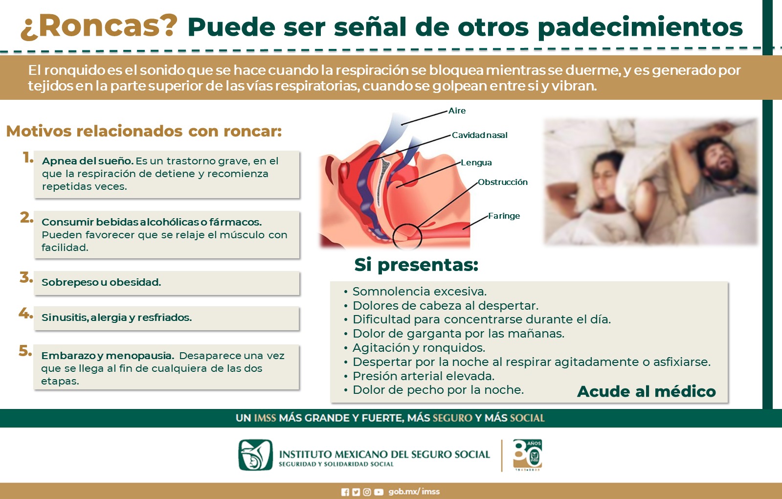 El Instituto Mexicano del Seguro Social (IMSS) en Chihuahua advierte que el roncar puede ser indicador de otros padecimientos y trastornos.