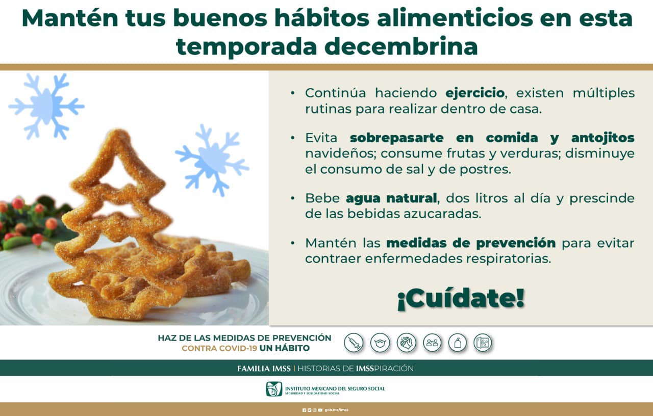 El Instituto Mexicano del Seguro Social (IMSS) en Chihuahua, a través de la Jefatura de Prestaciones Médicas, exhorta a la población a no excederse en el consumo de alimentos en las festividades de Navidad y de Año Nuevo.
