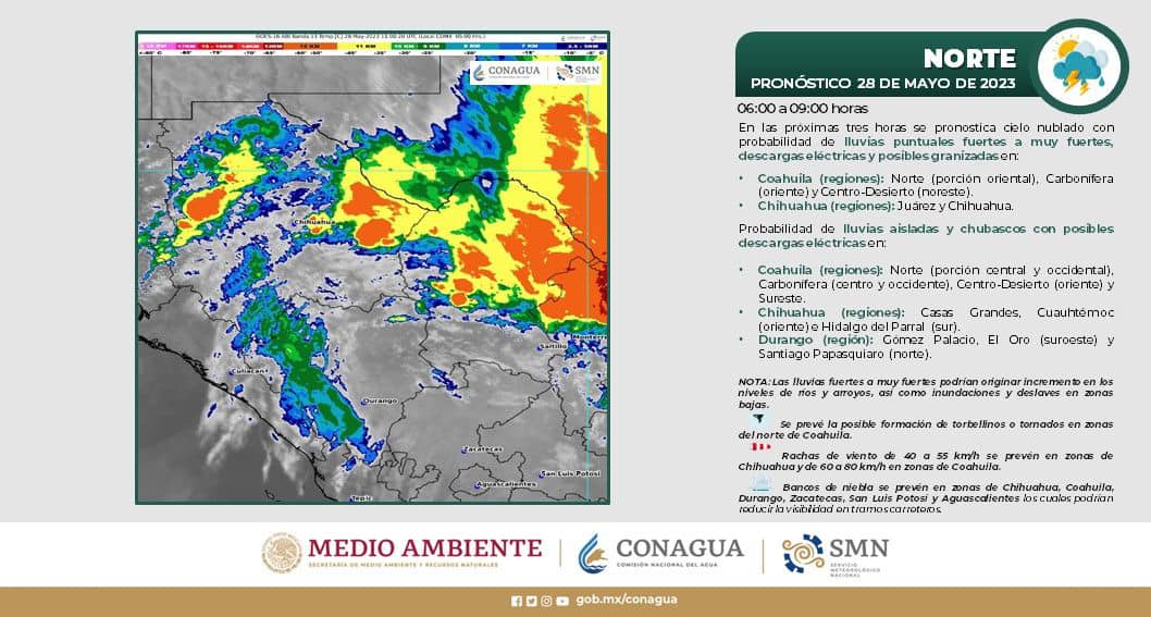 Para este domingo continúa la presencia de lluvias fuertes acompañadas de chubascos con caída de granizo, tormentas eléctricas y probabilidad de inundaciones repetinas, que puedan ocasionar algún incidente, por ello la dependencia estatal pide a las y los Chihuahuenses seguir estas medidas de prevención: