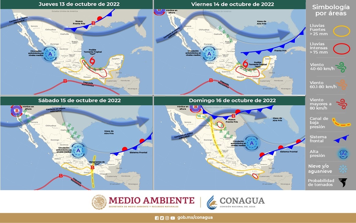 *El próximo domingo 16 de octubre ingresa el Frente Frío No. 4; exhortan a la población a mantener medidas preventivas