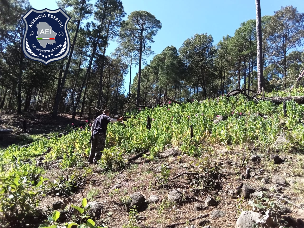 Resultado de un operativo desplegado en la región sur de la entidad, Policías la Agencia Estatal de Investigación destruyeron 9 mil plantas de amapola en el municipio de Guadalupe y Calvo.