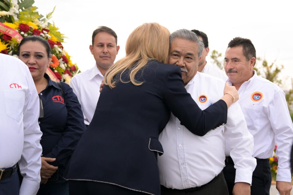 Al pie de La Guirnalda, escultura ubicada en las avenidas Ocampo, y Deza y Ulloa, la mandataria estatal se comprometió a mantener el clima de paz laboral que prevalece en la entidad, así como las condiciones de competitividad para la atracción de más inversiones.“