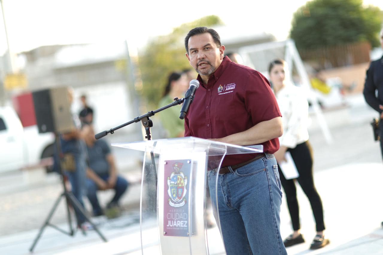 Cd. Juárez, Chih.-Con una importante transformación del entorno y como parte de las obras del Presupuesto Participativo 2022, el Presidente Municipal, Cruz Pérez Cuéllar, entregó dos parques, en la colonia Hacienda Santa Fe.