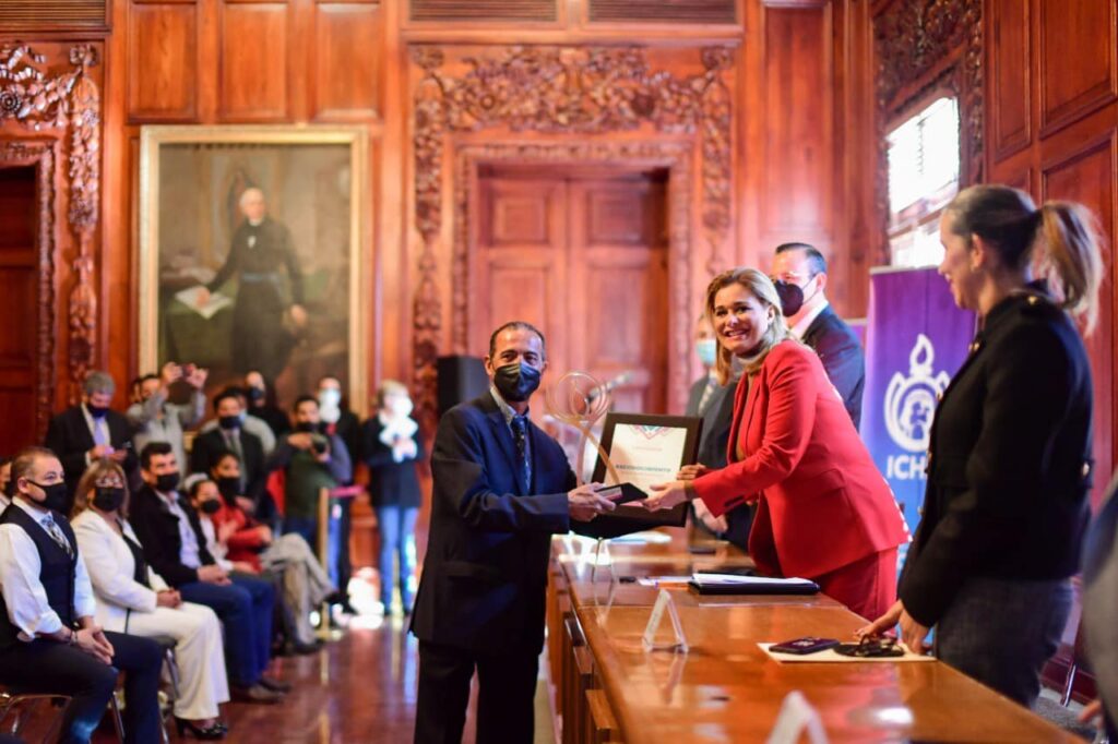 Cada uno recibió de manos de la titular del Ejecutivo una medalla conmemorativa, una placa de reconocimiento y una estatuilla, así como un estímulo económico de 110 mil pesos que entrega Gobierno del Estado, más 15 mil pesos que aporta la Fundación Caudillos.