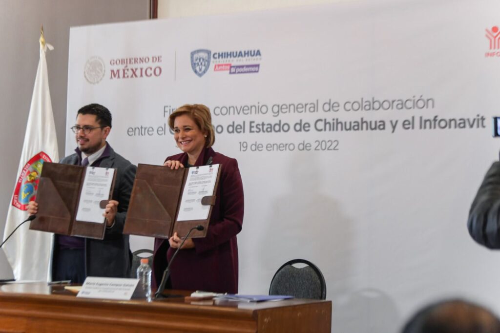 Con el acuerdo signado por el Director General del Infonavit, Carlos Martínez Velázquez y la gobernadora de Chihuahua, María Eugenia Campos Galván, se simplificarán trámites de los programas de mejoramiento de vivienda y autoconstrucción y se coordinarán acciones para el rescate de viviendas abandonadas en la entidad, con el objetivo de que más familias chihuahuenses pueden adquirir, mejorar y regularizar su patrimonio.