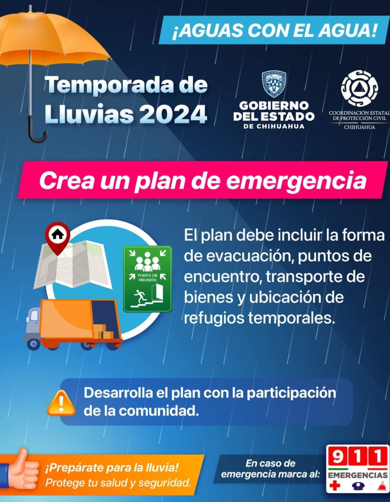 La dependencia estatal recomendó crear un plan familiar de protección civil, con el que se tenga a la mano las rutas de evacuación seguras. Además, los especialistas recomiendan guardar documentos personales importantes en una bolsa de plástico o en una memoria USB, en caso de que la lluvia inicie a causar estragos.