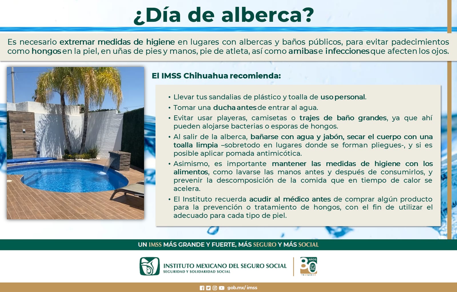 El Instituto Mexicano del Seguro Social (IMSS) en Chihuahua alerta a la población a extremar las medidas de higiene en los balnearios públicos en esta temporada vacacional de semana santa.