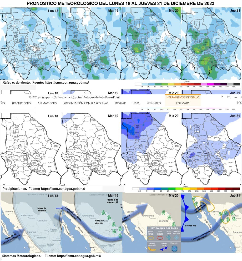 Según información emitida por el Servicio Meteorológico Nacional (SMN), hoy lunes 18 la masa de aire que impulsa al frente frío número 17, favorecerá a un ambiente de muy frío a frío por la mañana y templado por la tarde, con temperaturas de gélidas a muy frías con heladas en la zona serrana, y una mínima de 4 °C para la capital del estado.