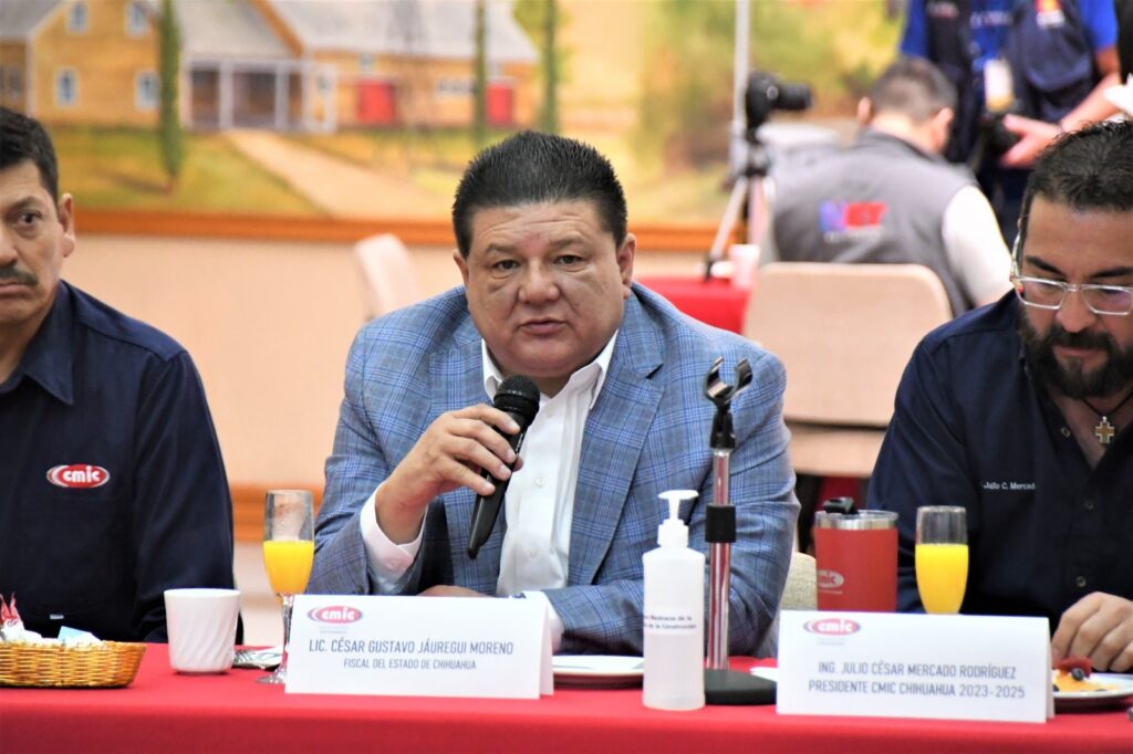 El convenio fue firmado esta mañana por el Fiscal General del Estado, César Jáuregui Moreno y el presidente de CMIC Chihuahua, Julio César Mercado Rodríguez, ante un nutrido grupo de constructores.