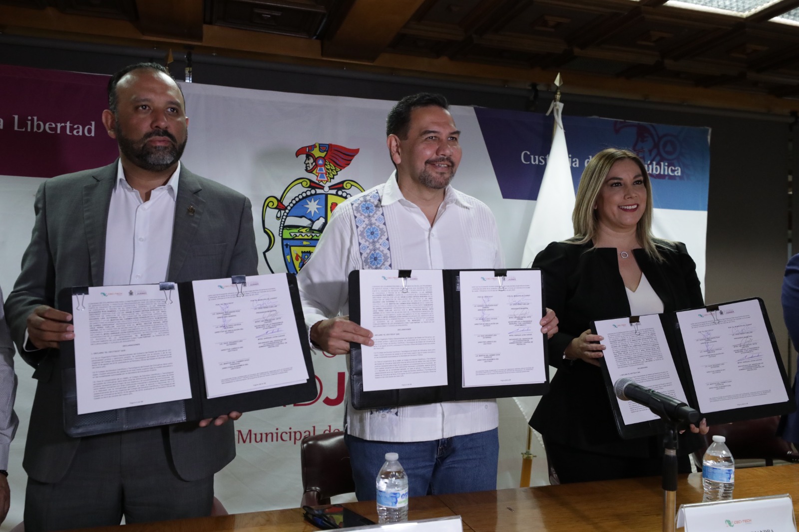 “Este es nuestro granito de arena, nos da mucho gusto participar en la firma de este convenio, cuenten conmigo, el Gobierno Municipal está comprometido”, expresó el Presidente Pérez Cuéllar.