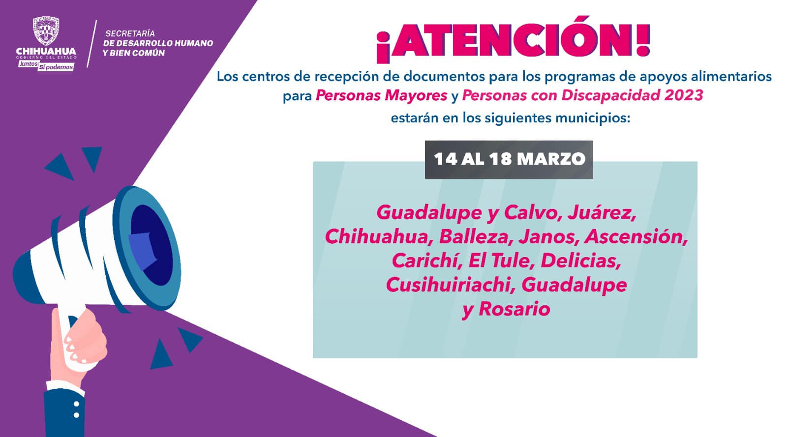 Gobierno del Estado, a través de la Secretaría de Desarrollo Humano y Bien Común (SDHyBC), informó que comenzará la recepción de documentos de las convocatorias para apoyos alimentarios a personas mayores o con alguna discapacidad.