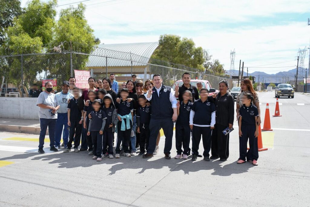 Chihuahua, Chih.- Como parte de una acción coordinada con vecinos y padres de familia del sector, el coordinador del Grupo Parlamentario del PAN, Alfredo Chávez Madrid, acudió a la Escuela Primaria Felipe Ángeles, ubicada en la colonia del mismo nombre, para participar en una jornada de pintura de pasos peatonales y convivir con la comunidad escolar. La actividad surgió a partir de una solicitud hecha por el director del plantel para mejorar la señalización afuera de la escuela.