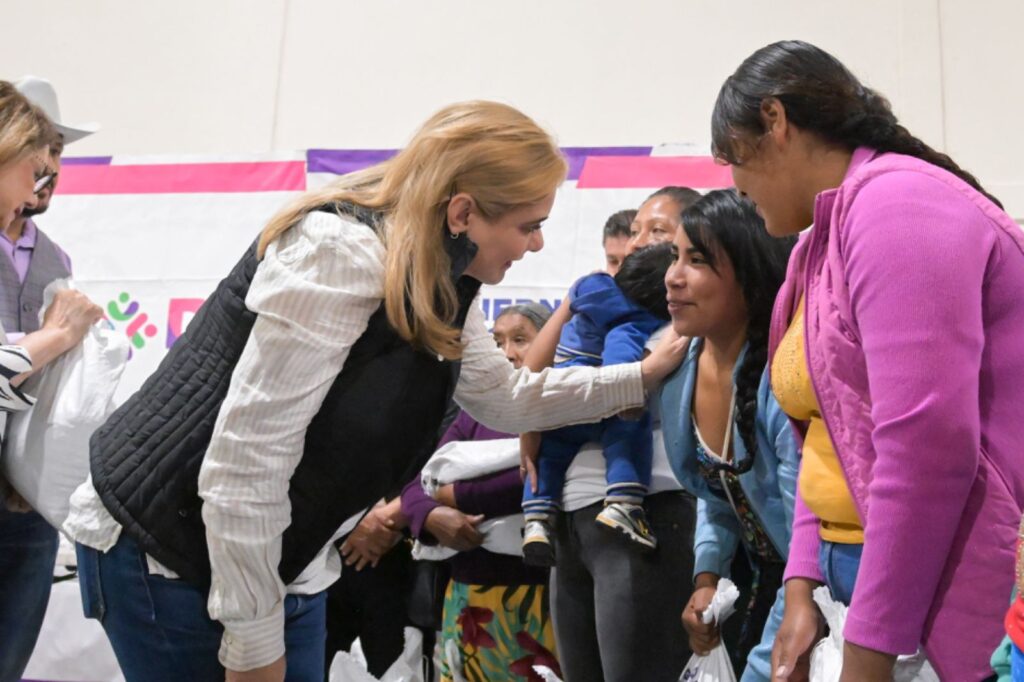 Acompañada por el secretario de Pueblos y Comunidades Indígenas, Enrique Rascón y por la presidenta del DIF Estatal, María Eugenia Galván Antillón, la mandataria entregó sacos de maíz y de frijol a madres de familia, a quienes felicitó por el trabajo que desempeñan cada día para sacar adelante a sus hogares.