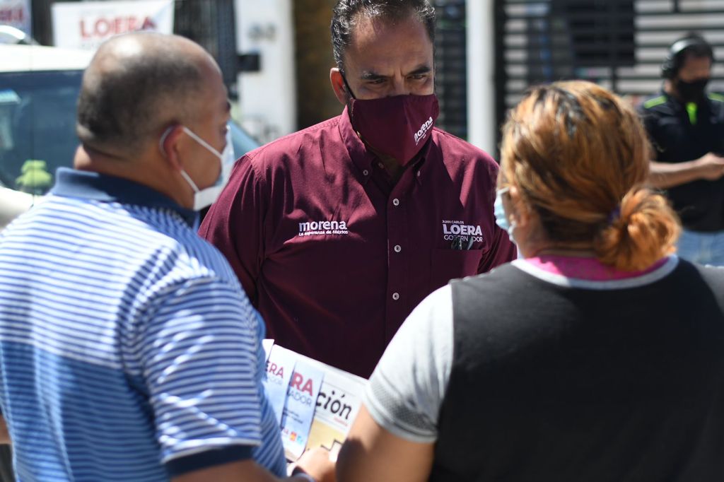 En recorrido casa por casa por las colonias Praderas y Manuel J. Clouthier, acompañado de Daniel Murguía, candidato a diputado federal en el Distrito 1, Juan Carlos Loera reveló que tanto las encuestas telefónicas, como las que son cara a cara, donde está el principal respaldo para los partidos Morena, PT y Nueva Alianza que lo abanderan, lo colocan por encima de sus demás contrincantes.