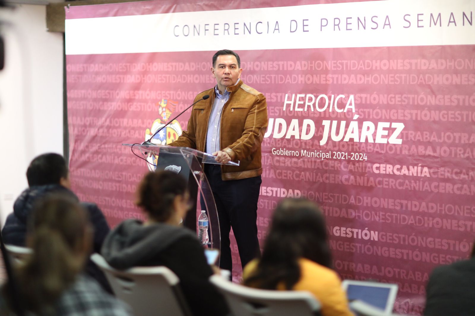 Durante la conferencia de prensa que ofrece cada semana en el Museo de Arqueología e Historia de El Chamizal, el alcalde mencionó que aunque el propósito de los migrantes venezolanos no es quedarse aquí, Ciudad Juárez cuenta con la capacidad para absorberlos.