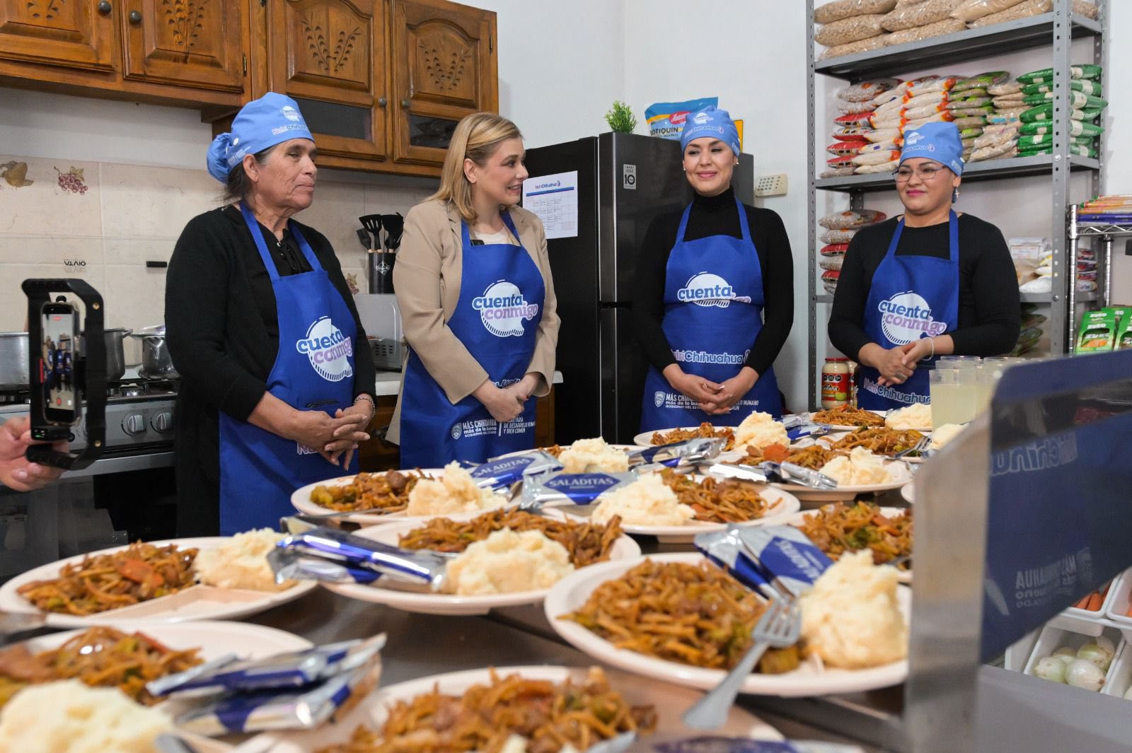 Como parte de las actividades, la mandataria supervisó las instalaciones, convivió con los beneficiarios y sirvió las primeras raciones de alimentos.