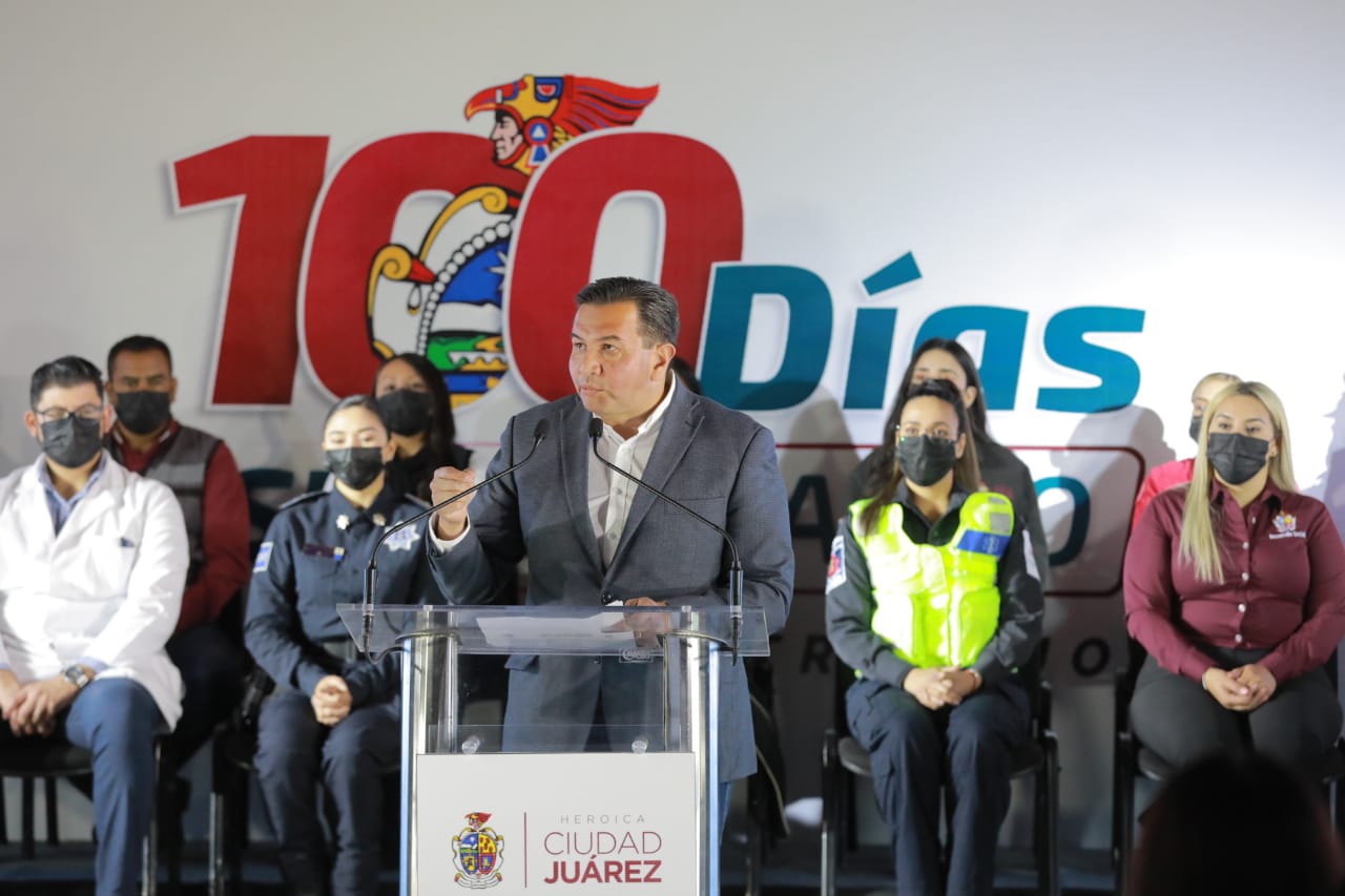 El Presidente Municipal Cruz Pérez Cuéllar envió un mensaje a las y los juarenses con motivo de los primeros 100 días de gobierno en el que detalló el arduo trabajo que realizó junto con su equipo de colaboradores, empleados municipales y sociedad juarense, sin descanso para poner en marcha la transformación de Ciudad Juárez.
