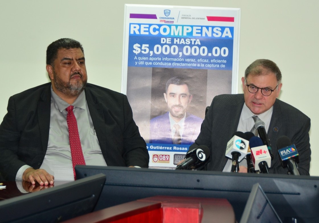 La Fiscalía General del Estado de Chihuahua ofrece una recompensa de hasta 5 millones de pesos a quien o quienes aporten información veraz, eficaz, eficiente y útil que conduzca directamente a la captura de Armando Gutiérrez Rosas, alias “CEO Aras”.