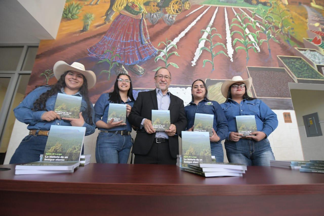 En el marco de los festejos que se llevaron a cabo por el 56 aniversario de la facultad de Ciencias Agrícolas y Forestales de la UACH, este día se presentó el libro “Ejido el Largo; la historia de un bosque eterno” escrito por el maestro Óscar Estrada Murrieta.