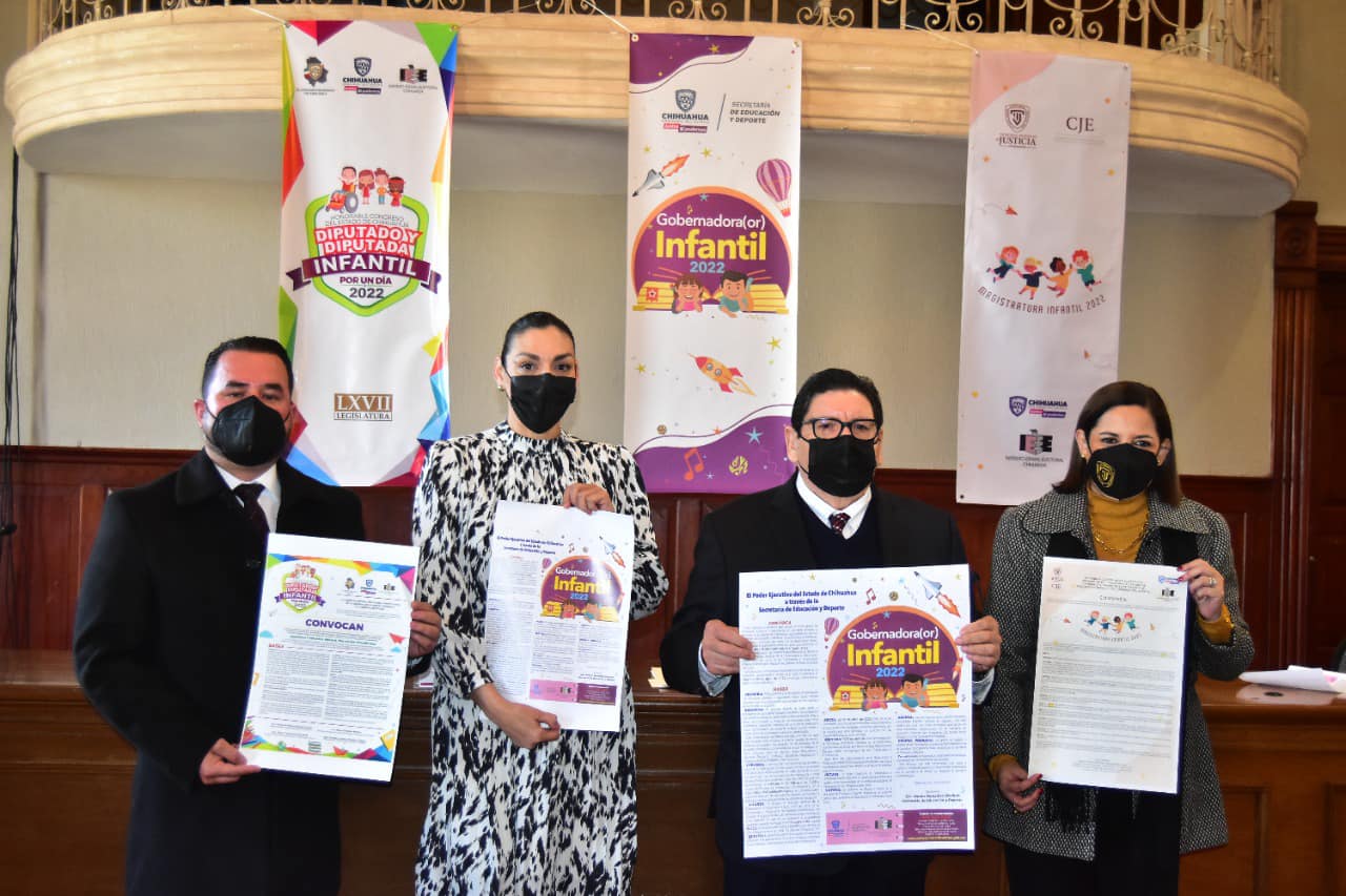 La Sexagésima Séptima Legislatura del Congreso de Chihuahua a través de las Comisiones Unidas de Educación, Cultura Física y Deporte y de Participación Ciudadana y Asuntos Electorales, en coordinación con el Gobierno del Estado, por medio de la Secretaría de Educación y Deporte, y colaboración del Instituto Estatal Electoral, presentó la convocatoria Diputado y Diputada Infantil en su edición 2022, la cual va dirigida a alumnas y alumnos que cursan el sexto grado de su educación primaria en escuelas públicas o privadas de la Entidad.