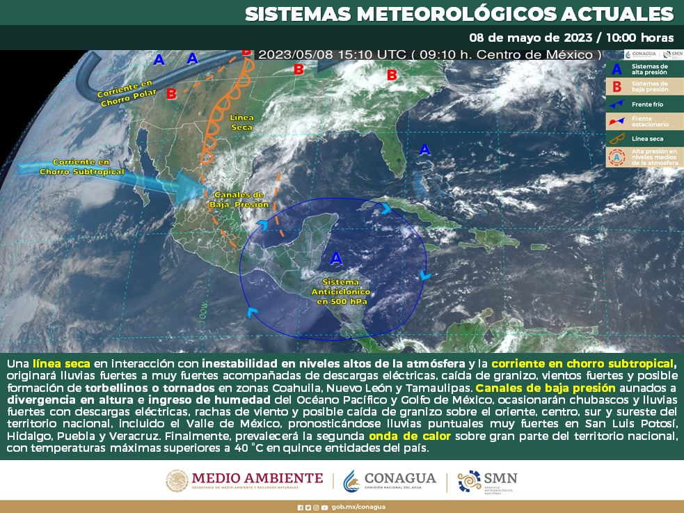 La Coordinación Estatal de Protección Civil (CEPC) dio a conocer que para la tarde de este martes 9 de mayo y el resto de la semana se presentarán temperaturas calurosas, así como precipitaciones y fuertes vientos en distintas zonas de la entidad.