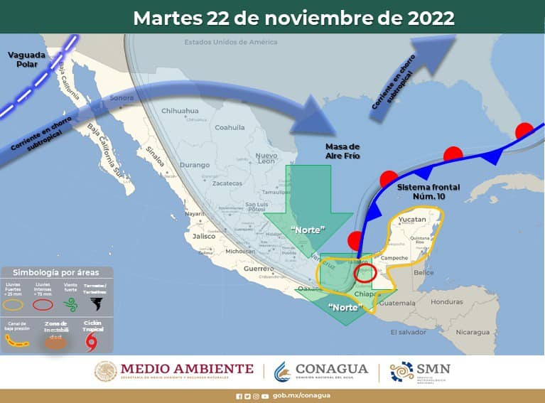 La Coordinación Estatal de Protección Civil, con base en el pronóstico emitido por el Servicio Meteorológico Nacional, da a conocer que para este próximo jueves 24 de noviembre se espera que ingrese al estado el Frente Frío número 11.